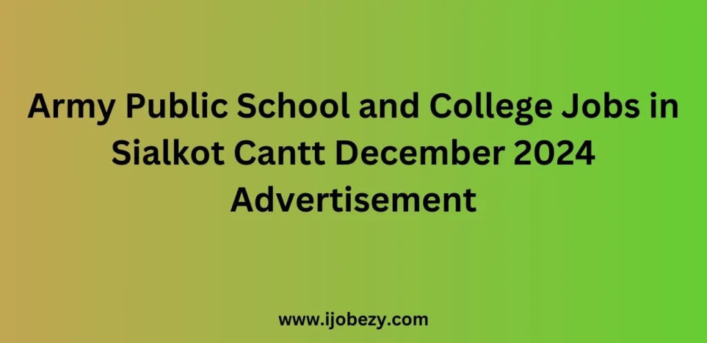 Army Public School and College in Sialkot Cantt has announced job openings for December 2024. These positions are available for qualified and motivated individuals looking to join a prestigious educational institution. The school is seeking staff for various roles, including teaching, administrative, and support positions. Army Public School and College Jobs in Sialkot Cantt December 2024 Advertisement