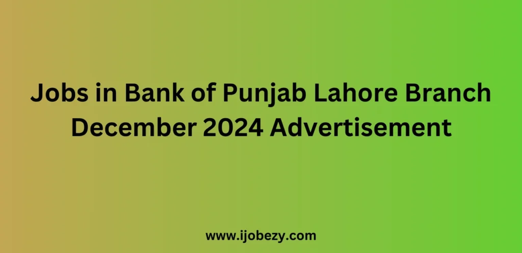 The Bank of Punjab (BOP) is offering exciting job opportunities at its Lahore branch in December 2024. The bank is looking for qualified individuals to fill various positions. The roles are open to both fresh graduates and experienced professionals, providing a chance to work in a leading financial institution in Pakistan.Jobs in Bank of Punjab Lahore Branch December 2024 Advertisement