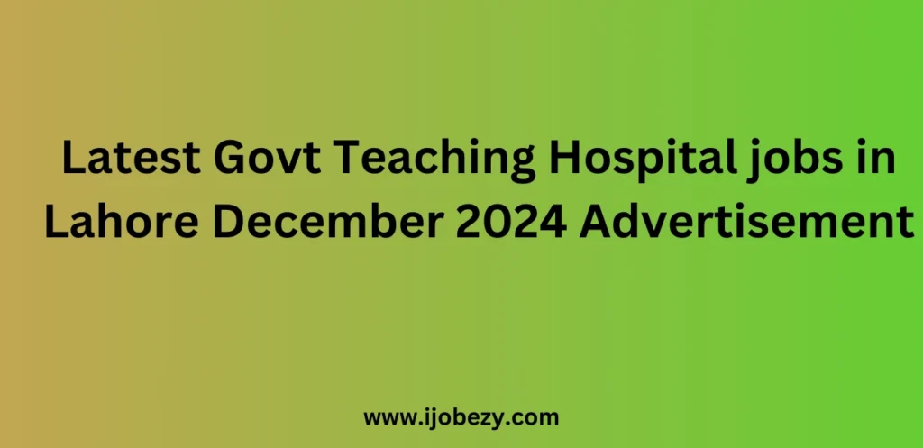 Latest Govt Teaching Hospital jobs in Lahore December 2024 Advertisement